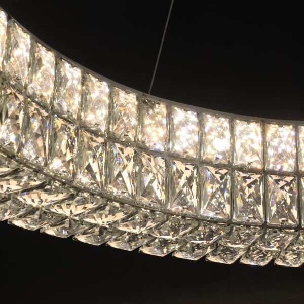 - ✨【Elegant Crystal Chandelier for Dining Room】High quality & contemporary design: This crystal chandelier hanging combine with three – sided clear crystal and stainless steel. Stainless steel design makes this crystal chandelier richer in refraction surface, K9 crystal faceted cut, as dazzling as diamond, that is modern and luxurious, ideal for furniture decoration lamps.