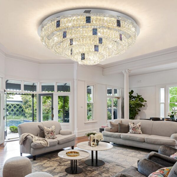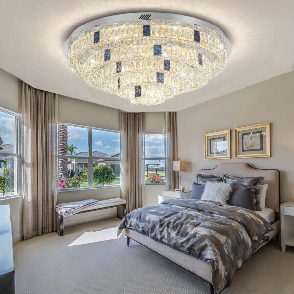 - ✨【Elegant Flush Mount Crystal Ceiling Light】This 5 tiered crystal ceiling light is equipped with polished stainless steel canopy and top K9 clear crystal, delicate crystal cutting are gorgeous and elegant, sparkle from every angle and provide adequate lighting, which is impressive and beautiful.it is easy to maintenance and clean, can help you saving the energy bills.