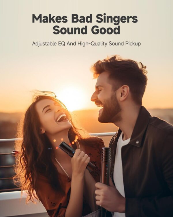 - User-oriented design: Karaoke machines are designed with hidden microphone storage space, allowing 2 wireless microphones to be inserted into the bluetooth speaker slot for automatic charging, eliminating worries about karaoke microphone loss. No need to pair the mics or go through extra connection steps