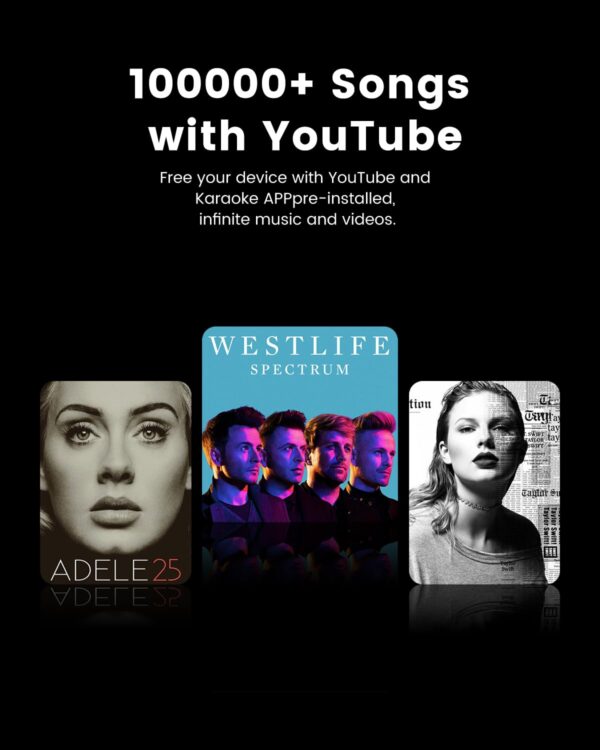 - Endless karaoke songs: Ikarao Break X2 professional karaoke machine not limited by your local song library, link to the built-in YouTube and Kraraoke APP via WiFi, with over 10,000,000+ songs in any language – unlimited songs and videos for you to choose from