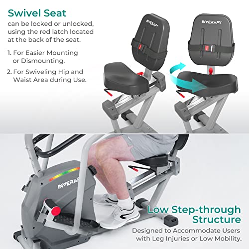 Inverapy by Innova RCT2025 Recumbent Cross Trainer with Swivel Seat & Leg Harness, White/Gray/Black
