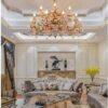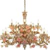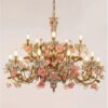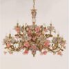 - French Design: This vintage chandelier features floral ceramic details pastoral tones and a copper frame creating a refined ambiance in your villa bedroom or traditional living space.