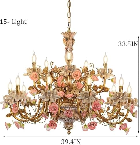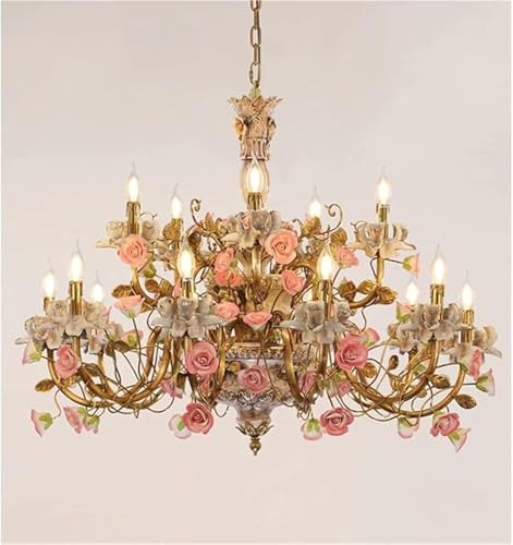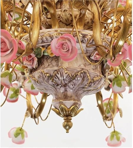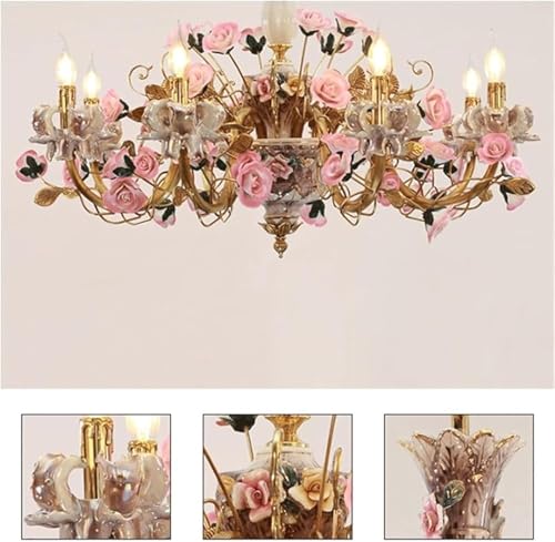 JIAOYINUO French Chandelier Pastoral Color Flower Luxury Art Hanging Lighting Copper Candle Head European Ceramic Creative Pendant Light Living Room Light Fittings Lamp Fixture(35.4in)(39.4in)