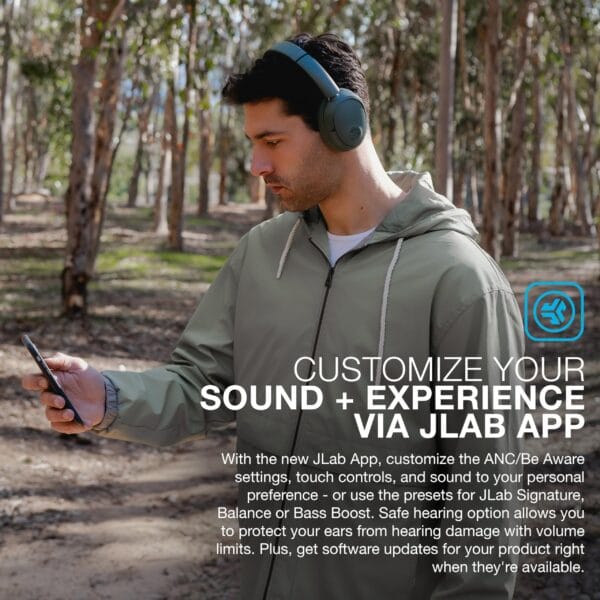 - 📱 CUSTOMIZE YOUR SOUND + EXPERIENCE VIA JLAB APP: With the new JLab App, customize the ANC/Be Aware settings, touch controls, and sound to your personal preference – or use the presets for JLab Signature, Balance or Bass Boost. Safe hearing option allows you to protect your ears from hearing damage with volume limits. Plus, get software updates for your product right when they’re available.