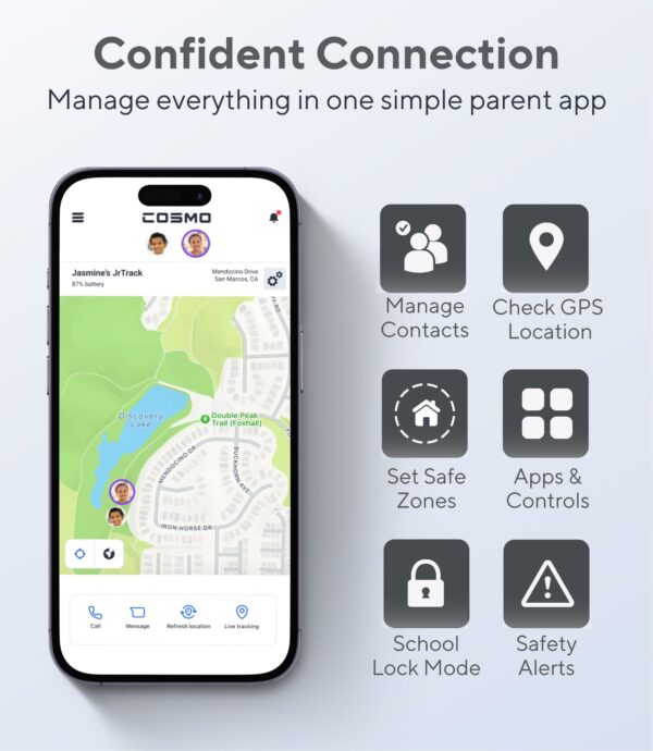 - PARENT-APPROVED CONTACTS ONLY –– JrTrack gives you confident connection for your child. Engineered with the highest-level security to allow only parent-approved contacts and block any access to internet or social media.