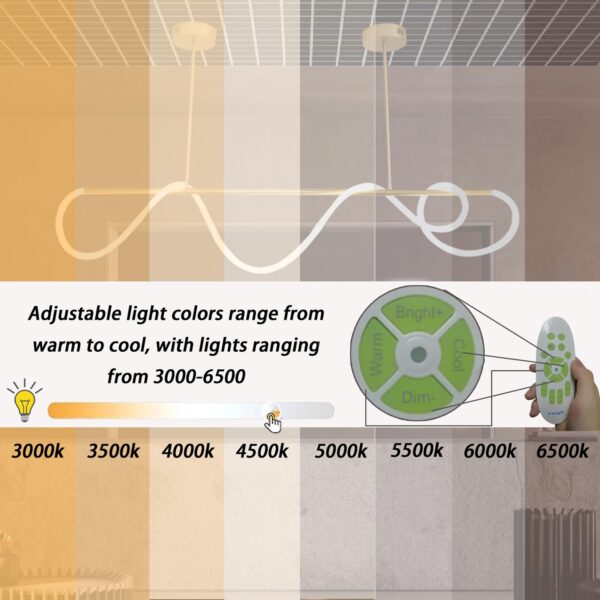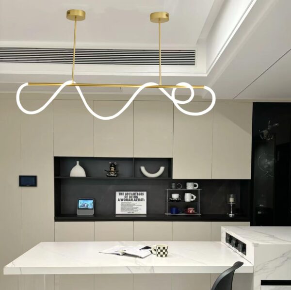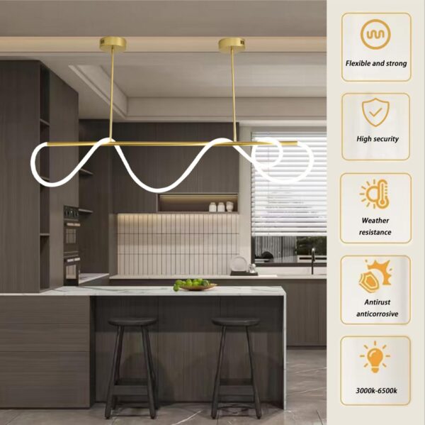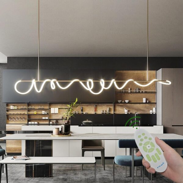 - UNIQUE DESIGN:Island lights for kitchenhas a metal frame and silicone light composition,clean and soft lines outline a sleek modern aesthetic while being adaptable to most types of home décor styles,the unique design of the silicone light allows you to create and design your own light bar with your favorite shape.Dimmable pendant light can also be adjusted to your preferred height adjusting from 1 meter to 1.5 meters is possible to create a room that matches your style.
