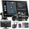 Jzones Carplay Screen for Car, 9″ Portable Wireless Carplay&Android Auto, 4K Dash Cam,1080P Backup Camera, Car Stereo Audio Receivers for Car, GPS Navigation Mirror Link, Bluetooth,FM, Siri