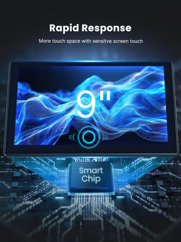 - RAPID RESPONSE WITH UHD TOUCH SCREEN&BUILT-IN STABLE CHIPS: Experience swift responsiveness with our UHD touch screen, boasting a 9-inch LCD display that adjusts to any light condition for clear visibility day or night. Powered by a robust chip and an professional cooling system, our system delivers a lag-free, smooth performance that keeps you focused on the road, worry-free. Elevate your journey with our car screen carplay
