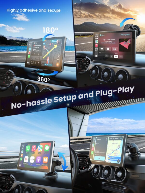 - SIMPLE AND SWIFT INSTALLATION FOR ALL VEHICLES: This car play screen is designed for effortless plug-and-play connectivity via your vehicle’s dashboard cigarette lighter socket. There’s no need to alter your car’s console or replace your existing radio system—you can maintain the originality of your vehicle’s interior while enjoying the full benefits of CarPlay. Compatible with a wide array of motor vehicles, including cars, trucks, vans, and pickups and so on.