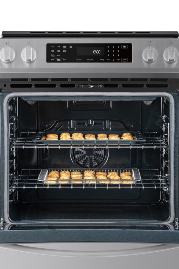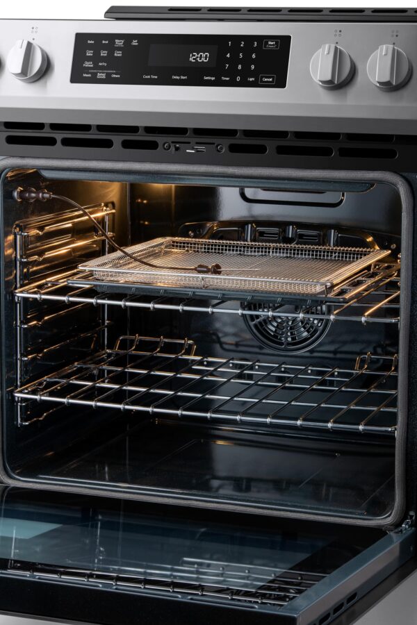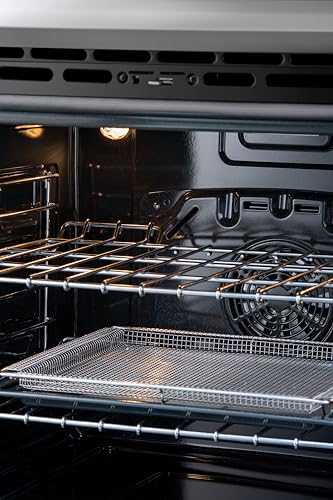 - TRUE CONVECTION AND AIR FRY: True Convection uses a fan and third heating element to preheat quickly and surrounds food with hot air for consistent, even cooking on every rack; Air Fry setting with basket uses hot circulating air to create crowd favorites that are crispy and crunchy on the outside, tender on the inside, without the need for a separate appliance
