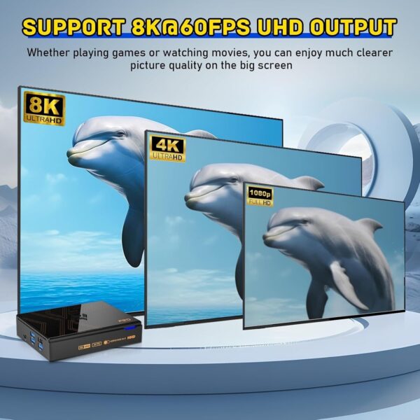Includes8GB DDR4 RAM and64GB eMMC storage for fast, stable operation. 🕹️X5 PRO Console Host ×1. Just plug and play! Supportsdual-screen output viaHDMI 2.1 andDP 1.4. ✔️ Multitasking with dual screens.