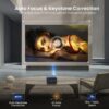 • 【Auto Focus | Auto Keystone Correction | 70%-100% Zoom】Instantly enjoy clear visuals with the K3 projector! This home projector incorporates advanced AI Auto Focus algorithms and Auto Keystone correction technology, accurately detecting real-time movements to automatically adjust the image to a rectangular shape, ensuring a crisp image in 3 seconds—no tedious manual adjustments. The zoom function allows effortless resizing of the image from 70% to 100%, all without moving the projector.