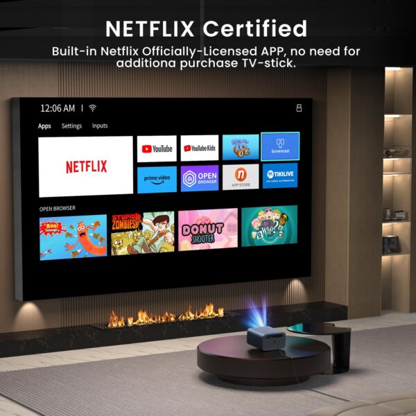 • 【Netflix Officially-Authorized Projector】Elevate your entertainment experience with a single switch to access the vast Netflix app—no HDMI connection, Chromecast, or TV stick required. Bid farewell to complicated WiFi screen mirroring setups and embrace seamless streaming. With just one click, instantly launch your favorite movies and TV shows. Plus, enjoy popular streaming services like Prime Video and YouTube for a more enjoyable and fulfilling entertainment time.