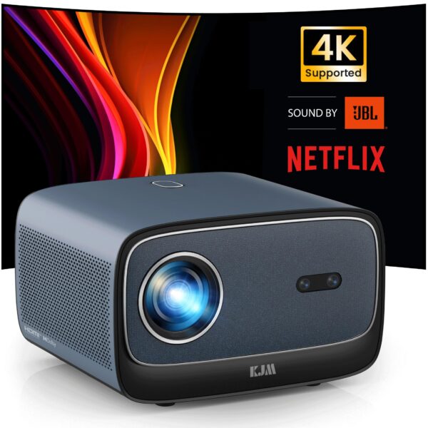 KJM Projector with Netflix Officially-Licensed, 1500 ANSI Wifi Bluetooth Projector 4K Supported, Sound by JBL 24W Speakers, Dolby Audio, Auto Focus & Keystone, HDR10, Home Outdoor Movie Projector