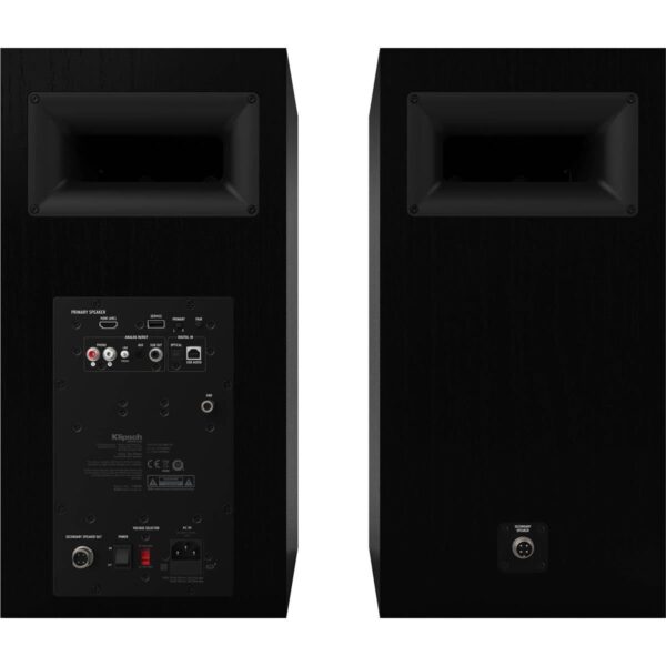 • CLASSIC KLIPSCH SOUND: With 1” titanium tweeters on TractrixⓇ horns – proprietary Klipsch technology – you’re guaranteed stunningly precise acoustics. The larger 90° x 90° silicone composite horn stretches from edge to edge providing incredibly efficient transfer of high-frequency waves for crisp, clear sound.