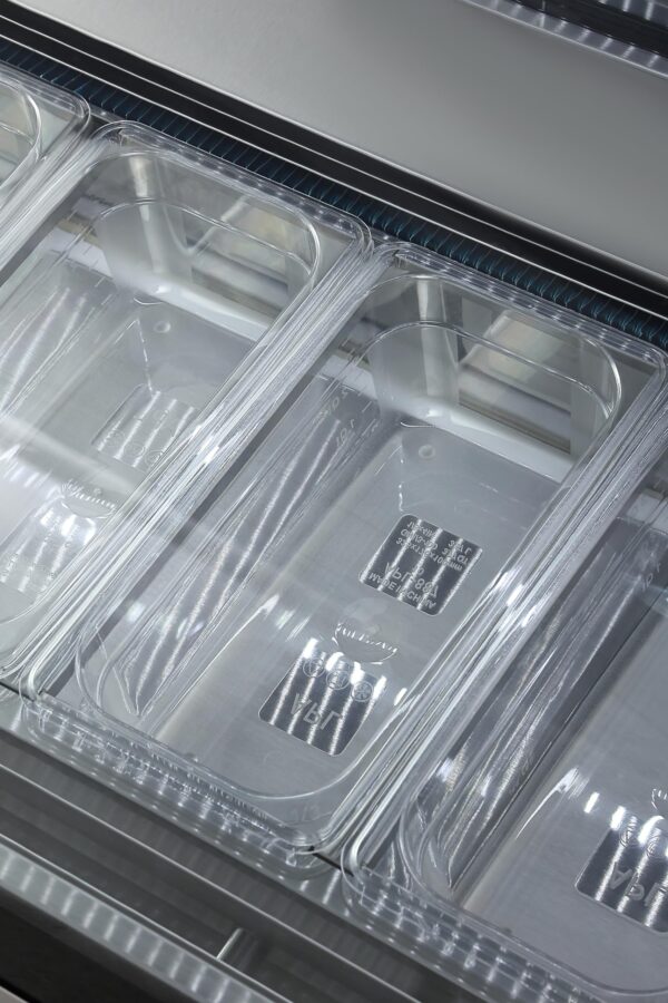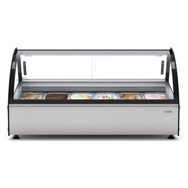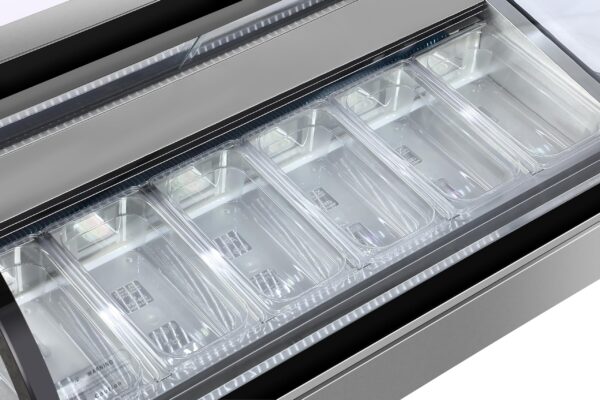 - Hygienic Presentation: Customer safety is paramount. Our 6 Pan Gelato Freezer features a built-in glass sneeze guard to protect your desserts while maintaining a clean and sanitary presentation.