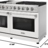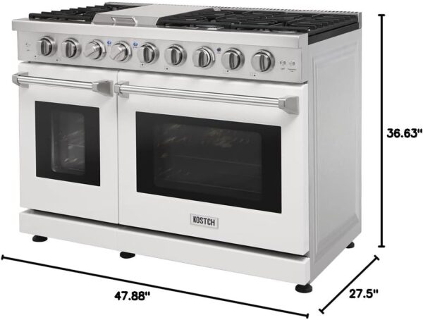 - The lp kit is included, allowing professionals to convert your gas range to liquefied petroleum gas following the included instructions. Double oven 4.6 cu. ft. and 2.2 cu. ft. capacity. Convection fan. 48 inch gas range dimension: 47.88”W*27.5”D*(36.63-37.9)”H.