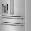- Spacious Storage Capacity – Features a 12.4 cu. ft. refrigerator, 6.6 cu. ft. freezer, and a versatile 2.63 cu. ft. flex drawer for all your fresh, frozen, and specialty storage needs. Precision multi-zone temperature control with one-touch locking lets you customize cooling from 34°F-44°F for fridge, -7°F to 7°F for freezer, and 4 flex drawer presets (30°F meat/34°F drinks/37°F deli/41°F wine) Convenient Ice & Water Dispenser – Enjoy instant chilled water and ice cubes at your fingertips, with the external dispenser delivering fresh, filtered water and producing up to 4.4 lbs of ice per day with 1.7 lbs storage capacity.
