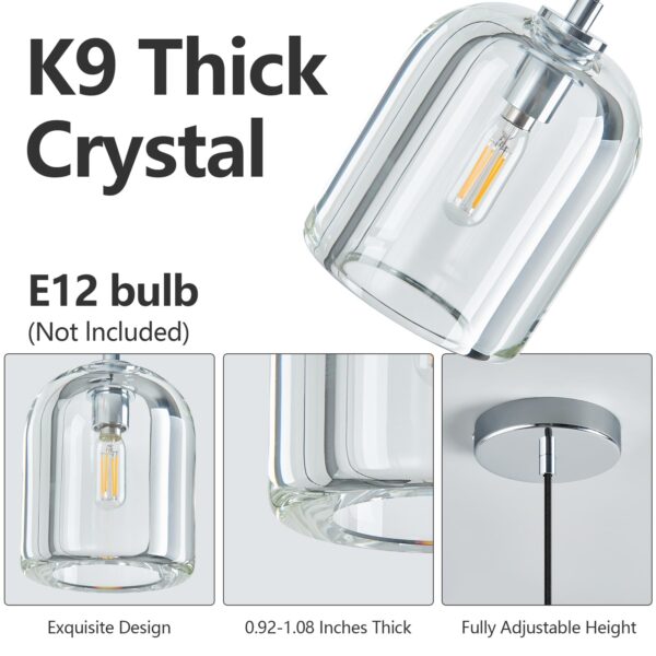 - 【Unique design and production】 The chrome pendant light is made of ultra-thick high-quality transparent crystal glass, and the crystal lampshade scatters the light beautifully, creating an elegant atmosphere in any space.This chandelier is suitable for dining room, kitchen, living room, dining table, bedroom, etc.