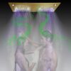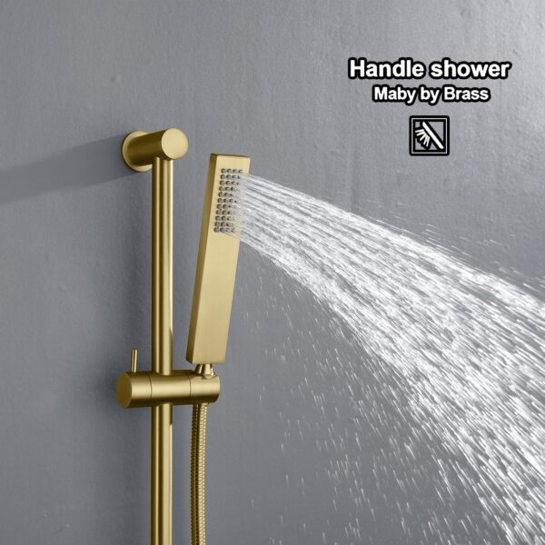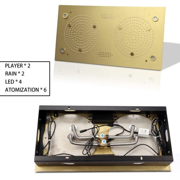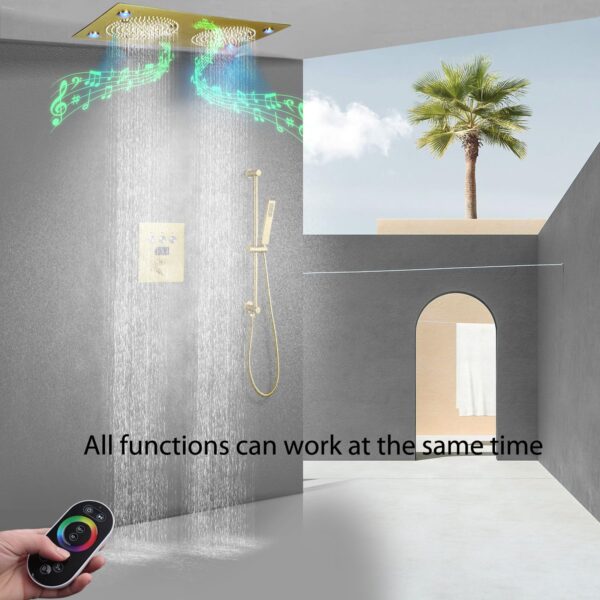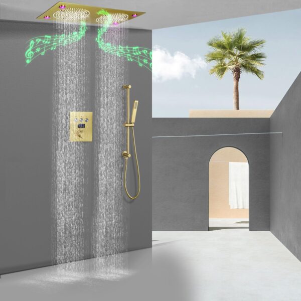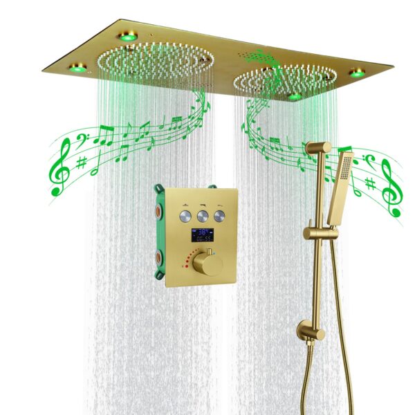 LED Rain Ceiling Shower Head With Hand Held Sprays, Music Luxury Thermostatic Rainfall Shower System Set (24.5X12.5 inch Mist And Rain Shower, Brushed Gold)