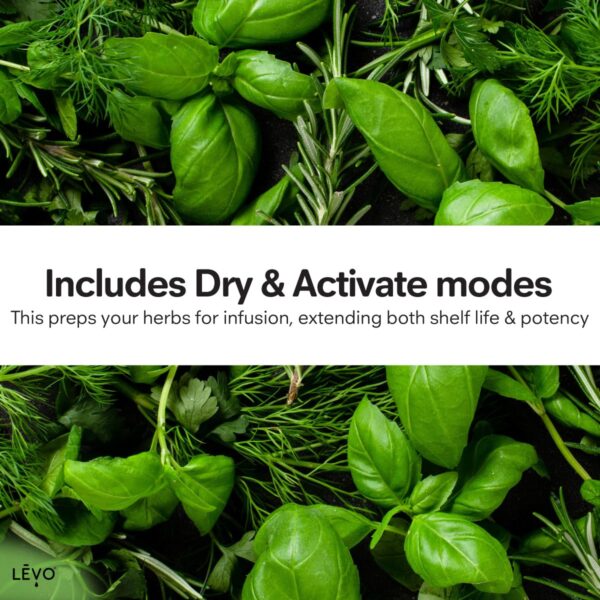 - DRY, ACTIVATE, INFUSE, DISPENSE: With the press of a button, the LĒVO II+ makes transforming your favorite ingredients even easier and more efficient than before, with new added odor protection and a reimagined interface. With LĒVO II+ you can DRY fresh herbs from a garden, ACTIVATE medicinal herbs, INFUSE anything (even, roots and peppercorns!), and DISPENSE into the container of your choice.