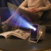 - 360 Degree Handle – Q’s innovative, rotating handle has two practical benefits. Swing the handle up to easily transport the 3 pound projector virtually anywhere. Or, swing the handle down for to create a viewing angle of your liking whether for a movie night on a living room wall or pointed above for a celestial sky scape shown on a ceiling.