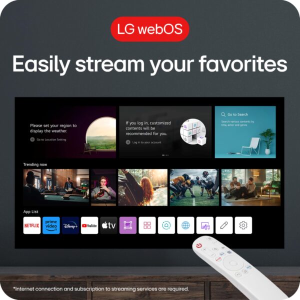 - WebOS – Stream the latest hit series and blockbuster films right from your projector with webOS, supporting popular platforms like Netflix, Prime Video, Disney+, YouTube, and Apple TV.