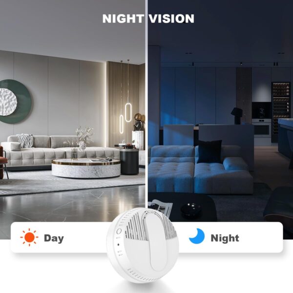 - 150° View and HD Camera: This smoke detector’s hidden camera features 5 infrared lights, providing a 150° horizontal view, 1080P high-definition camera and automatic night vision function, allowing for clear surveillance even in complete darkness.