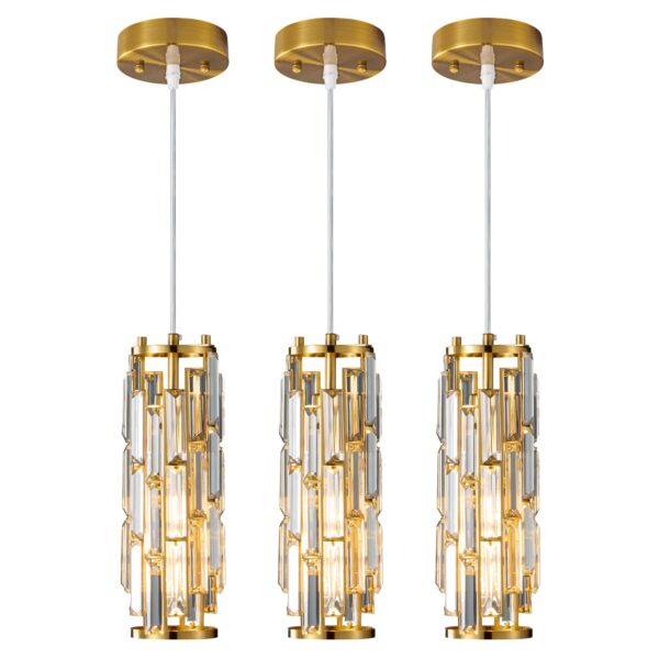 LMQNINE Pendant Lights Modern Gold Pendant Light Mini Crystal Chandelier Pendant Lighting for Kitchen Island Dinning Room Bedroom Kitchen Sink Lighting (Gold 3-Pack)