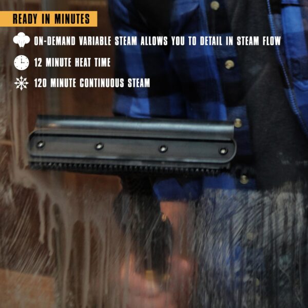 - LARGE CAPACITY TANK — The 64-ounce water tank heats up in under 12 minutes and provides up to 120 minutes of steam. Blast away dirt and grime with on-demand variable steam control, optional steam lock for continuous steam, and 4 bar (58 PSI) pressure.