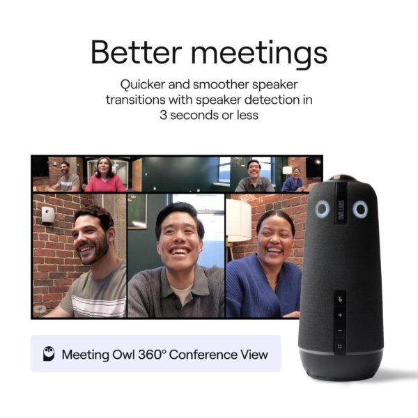 Details: The Meeting Owl 4+ is a 360-degree camera, mic, and speaker device with award-winning speaker-switching software and purpose-built enterprise features that create immersive meeting experiences for hybrid teams.