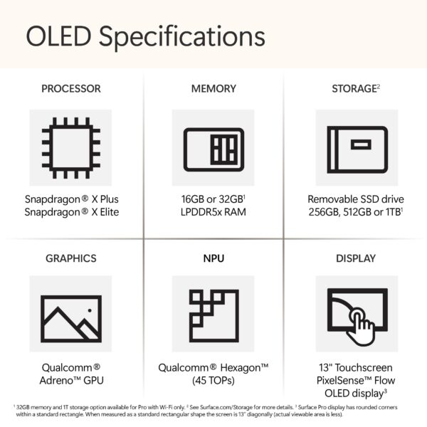 Microsoft Surface Pro 2-in-1 Laptop/Tablet (2024), Windows 11 Copilot+ PC, 13″ Touchscreen OLED Display, Snapdragon X Elite (12 Core), 16GB RAM, 256GB Storage, Black, Amazon Exclusive
