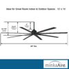 - DIMENSIONS: Measures 13.5” from the ceiling to the bottom of the fan with the included 6″ downrod. This Contemporary Ceiling Fan has a blade sweep diameter of 84” with 9° Blade Pitch