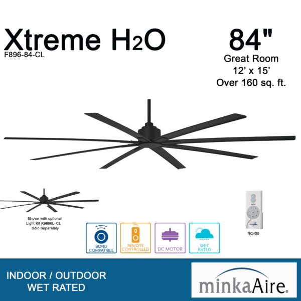MINKA-AIRE F896-84-CL Xtreme H2O 84 Inch Outdoor Ceiling Fan with DC Motor, Coal Black Finish