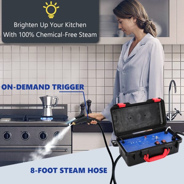 - [Excellent Performance] This professional steam Cleaner can support running for 3-4 hours without overheating. The outstanding continuous work ability can not only easily complete household steam Cleaning tasks, but also can be used for commercial use. Portable but powerful!