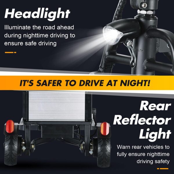 - 👨🦼【Comfort Thicken Seating】This travel mobility cart features an attractive fully-padded faux-leather seat and seat widened to 17”, effective waterproofing, , very soft and comfortable to sit on, reducing driving fatigue and providing a comfortable experience, Additionally,our motor scooter for adults has a seat surrounded by two padded armrests