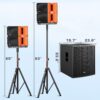 - Portable & Adjustable Design: The system comes with 2 adjustable tripods (65-89 inches), side handles for easy transport, and a compact design. The subwoofer is made from durable MDF wood to reduce resonance and ensure clear, accurate sound.