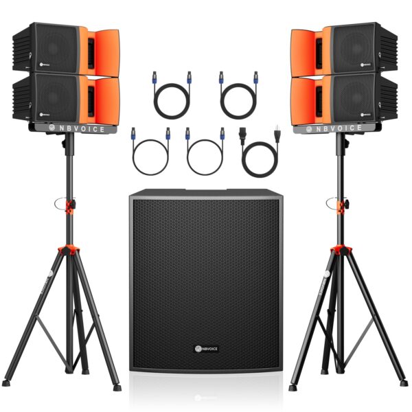 Details: NBVOICE 18-Inch 4000W P.M.P.O Stereo PA Speaker System with Bluetooth/USB/Remote, Includes 4 Line Array Speakers, 1 Active Subwoofer, 2 Tripods – Perfect for DJ, Parties, Weddings, and Events.The NBVOICE PA system is a professional-grade audio solution designed to deliver powerful, crystal-clear sound for any event. Whether you’re hosting a wedding, conference, church service, or a large outdoor party, this system has the power and versatility to meet your needs.