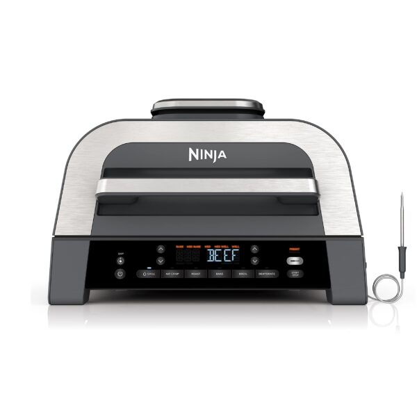 Ninja DG551 Foodi Smart XL 6-in-1 Indoor Grill with Air Fry, Roast, Bake, Broil, & Dehydrate, Foodi Smart Thermometer, 2nd Generation, Black/Silver
