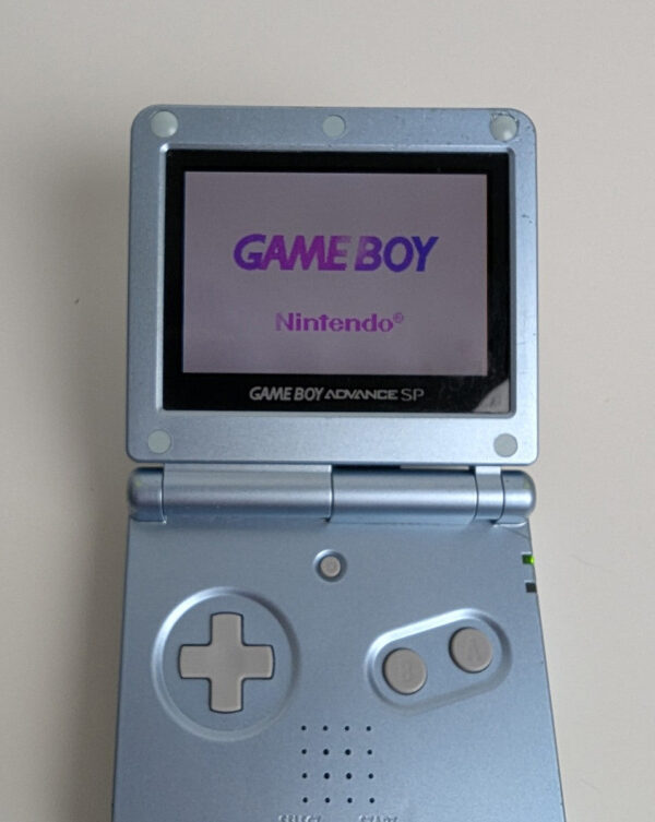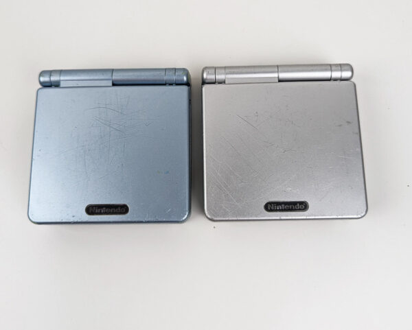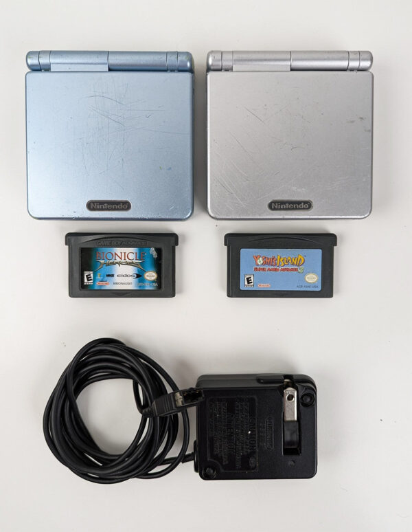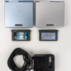 Nintendo Game Boy Advance SP Console x2 Pearl Blue & Silver charger bag 2 games