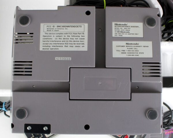 • NES Action Set in Original Box. All the parts are original including the RF switch and AC adapter. Hopefully it’s not a difficult fix. • Nintendo. – Console, Smooth finish top. There is a short tear on the bottom edge and a small puncture on the top as photoed.