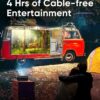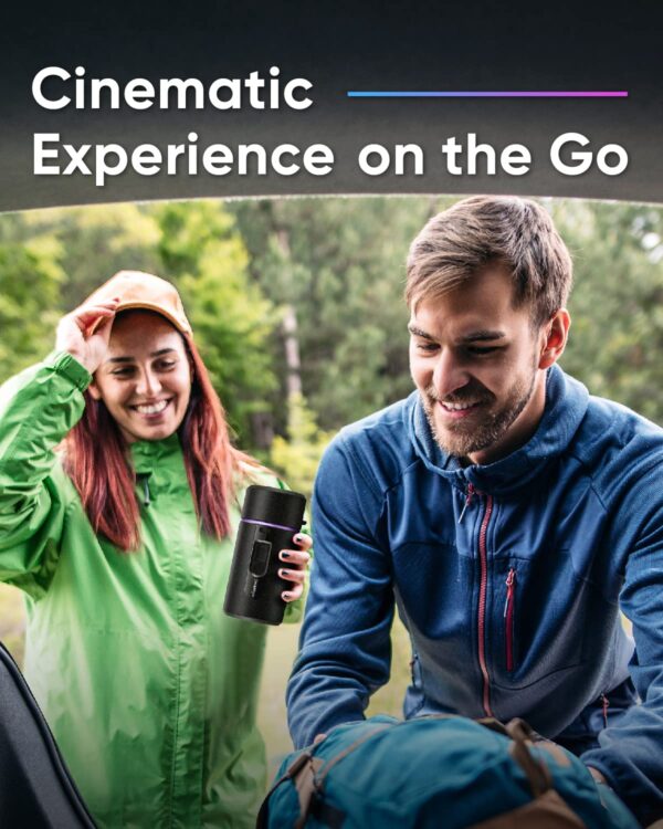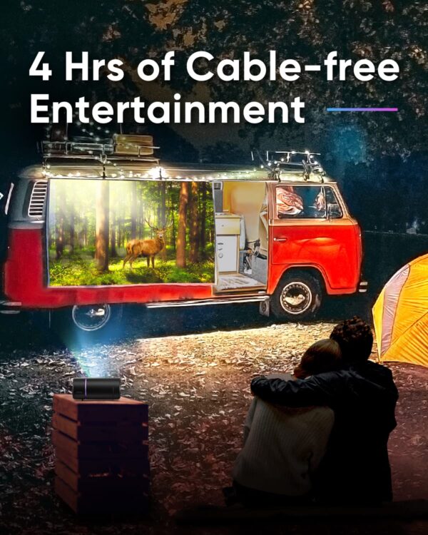- 【Portability on-the Go】Built-in battery & Harman Kardon speaker, this projector with wifi and bluetooth provides up to 7 hours of music and 4 hours of movie. Specifically designed for high portability, with a compact and lightweight weighing only 0.72kg. No need to buy extra accessories with the included CARRY BAG and TRIPOD-FREE design, making it a hassle-free solution for you on the go.