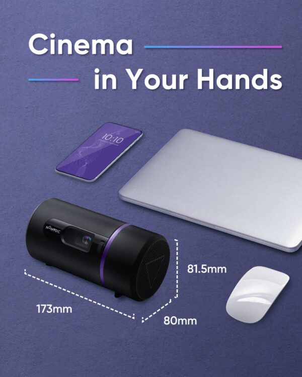- 【Effortless Setup with a Twist】Thanks to 90-degree rotatable lens, R150 mini projector can easily adjust the projection angle to fit any room, no matter how small or oddly shaped. Whether you need to project onto a wall, ceiling or floor, this projector can handle it all. Say goodbye to tripod and hello to easy rotation.