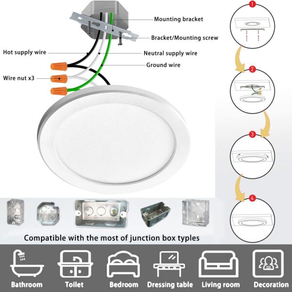 - 【IP44 Waterproof—Built for Real Life】Designed for durability, the sealed, dust-resistant housing keeps out moisture, dirt, perfect for bathrooms, covered patios, or high-humidity zones. The premium fireproof plastic shell won’t yellow or accumulate dust, so it stays looking fresh year after year—no regular cleaning required. Just install and forget!