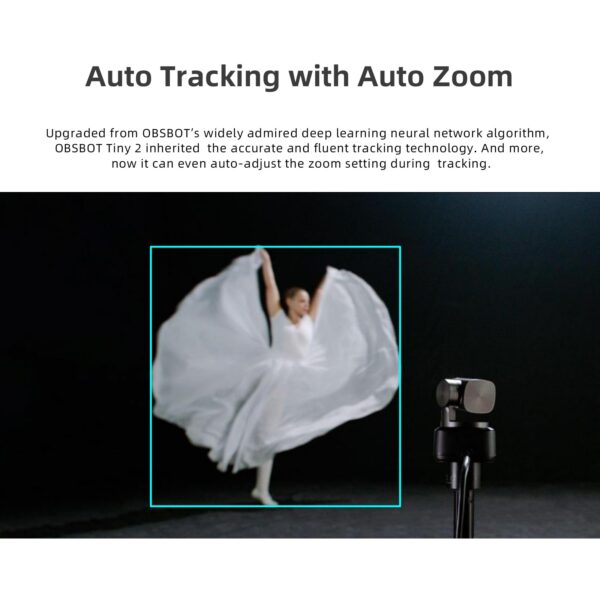 - 🏆【AI Tracking with Auto Zoom】Upgraded from OBSBOT’s widely admired deep neural learning network algorithm, OBSBOT Tiny 2 inherited the accurate and fluent tracking technology. And more, now it can even auto-adjust the zoom setting during tracking.