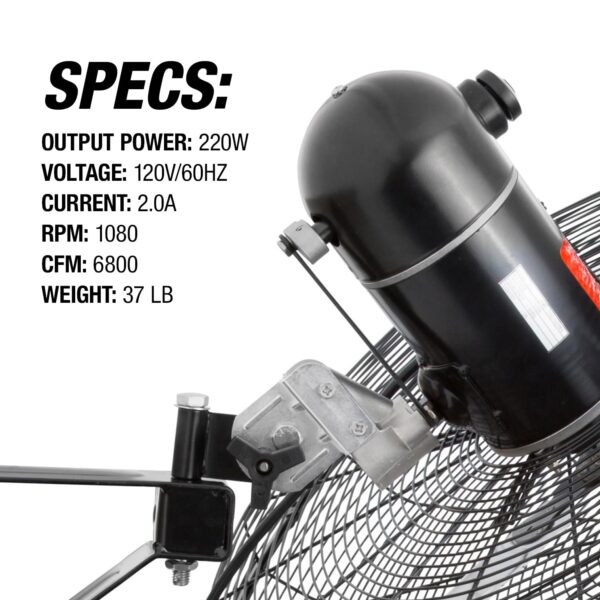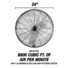 - Three-Speed Motor: The 3-speed oscillating fan motor delivers up to 6800 CFM of airflow, providing customizable cooling power for workshops, patios, and outdoor spaces. Adjust the industrial fan speed for light breezes or high-velocity cooling, depending on your needs.