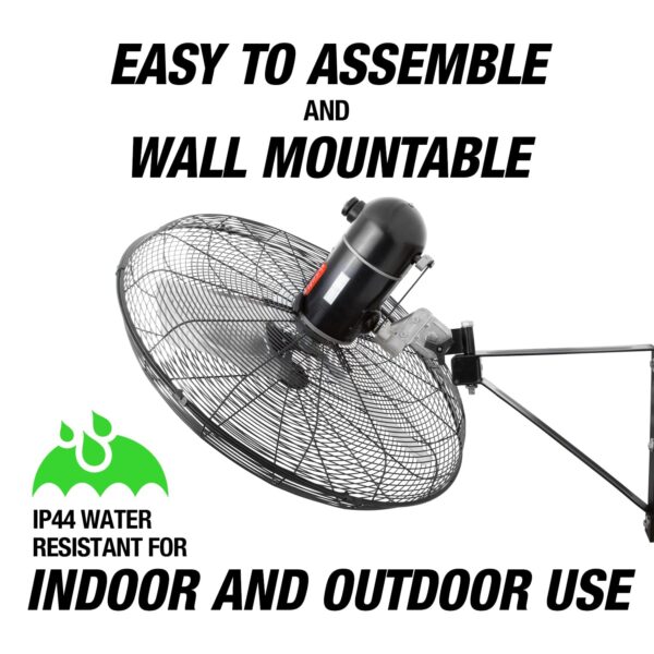 OEMTOOLS OEM24893 24″ Outdoor Oscillating Wall Mount Fan, 3-Speed for Garage or Patio, 6800 CFM Airflow Heavy Duty, Waterproof Industrial