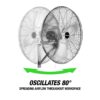 - Oscillating Function: The 90° oscillating outdoor fans feature ensures wide air circulation across large areas. This makes outdoor oscillating fan ideal for cooling garages, patios, or commercial spaces, maintaining consistent airflow coverage without repositioning.