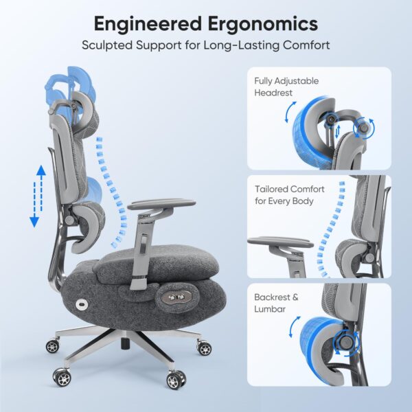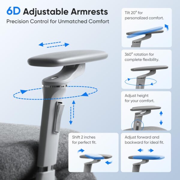 - 【Adaptive ergonomic office chair: Full-Body Comfort That Fits You】 This ergonomic office chair is designed for all body types, featuring an adjustable headrest, multi-angle backrest, and 6D armrests. Whether you’re working from home, gaming, or at the office, it adapts precisely to your posture and height. Also ideal as a gaming computer chair that delivers day-long support with zero compromise on comfort.