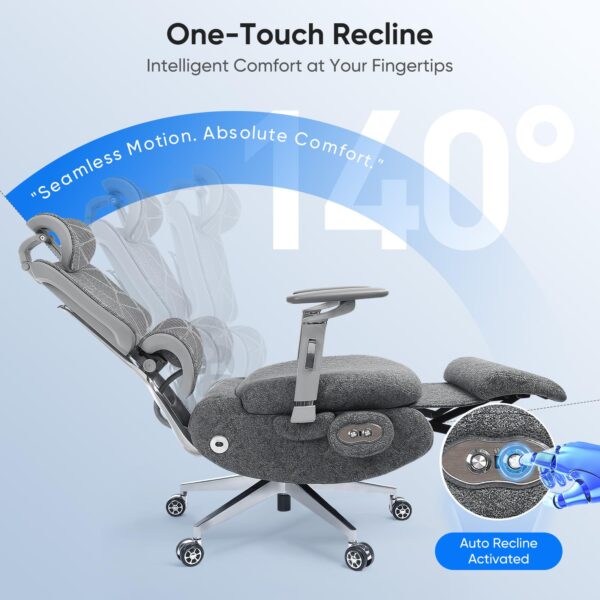 - 【One-Touch Electric Recline: From Work Mode to Rest Mode Instantly】 Switch effortlessly from upright focus to reclined relaxation with just one button. This reclining office chair features a whisper-quiet electric motor that adjusts from 90° to 140°, offering smooth transitions with no manual force. Ideal for quick breaks or midday naps—comfort meets convenience in this office chair with foot rest.